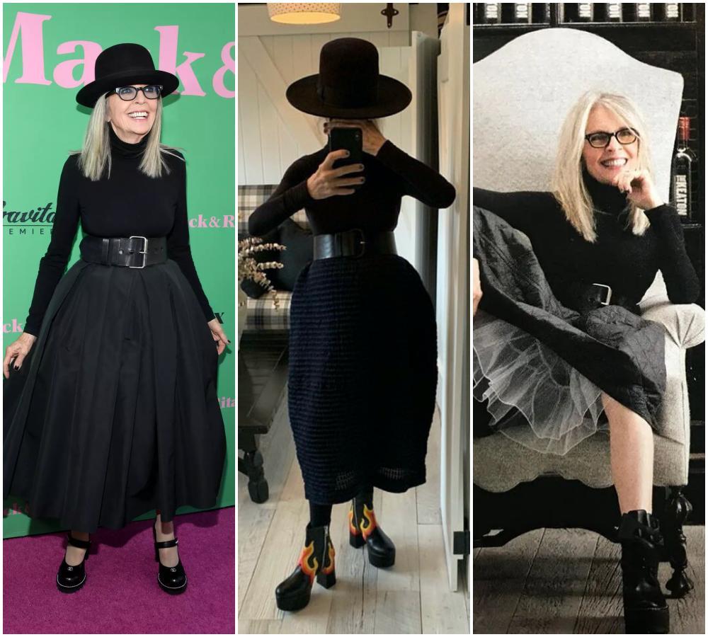 Vogue曾這樣評價她:你很少看到她穿黑色、白色、米色或灰色以外的衣服。雖然她在用色上一直保持極簡主義,但出於她對戲劇性細節的熱愛,造型依然新鮮。讓駝色套裝流行起來是很難的,但黛安憑藉她有趣的疊搭和比例調整輕鬆做到了。偏愛戲劇化的輪廓,能彌補她缺乏色彩的缺陷。▼