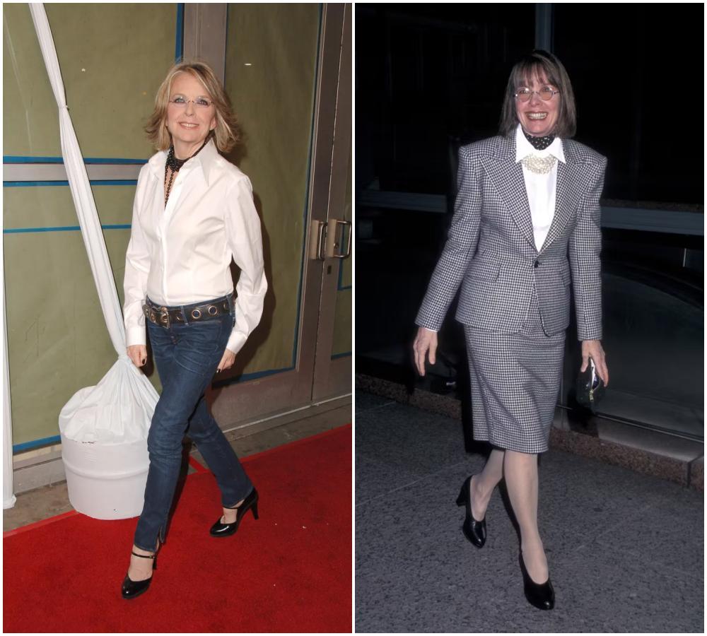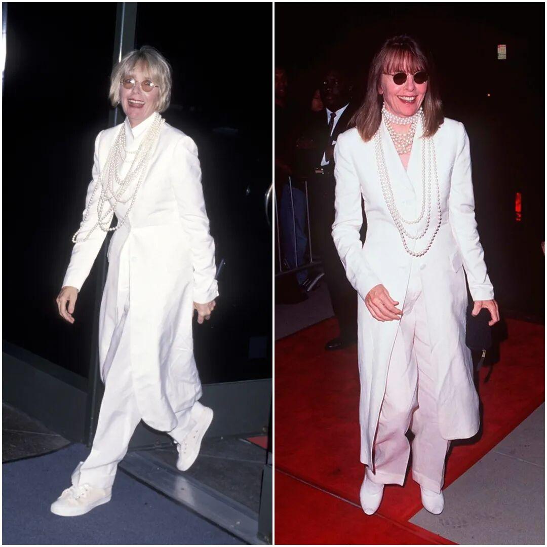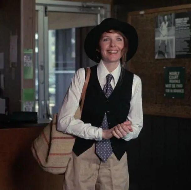 那時的好萊塢,還在用高跟鞋、緊身裙、紅脣來塑造性感。黛安·基頓卻反其道而行之,穿着男人的衣服,卻比任何人都更有魅力。