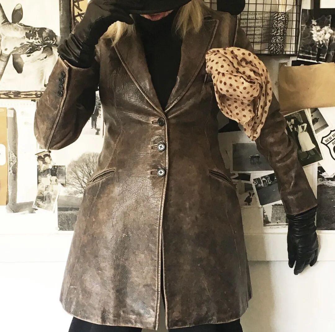 她的穿搭裏,Ralph Lauren刷臉的次數真的有點多。這件Ralph Lauren的皮衣,工齡超過30年。▼