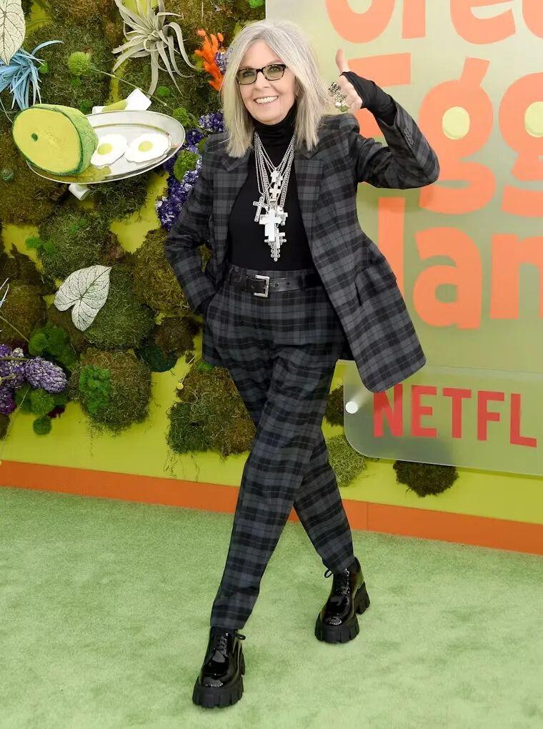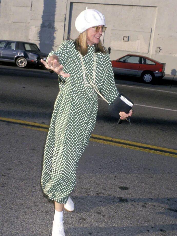 作爲好萊塢傳奇女星,黛安身兼演員、製片人和導演的身份。在演藝事業上自然沒話說,早年就憑藉電影《安妮·霍爾》拿下奧斯卡影后。但她最讓人難忘的,不是獎項,而是她那種“我就這樣”的姿態。