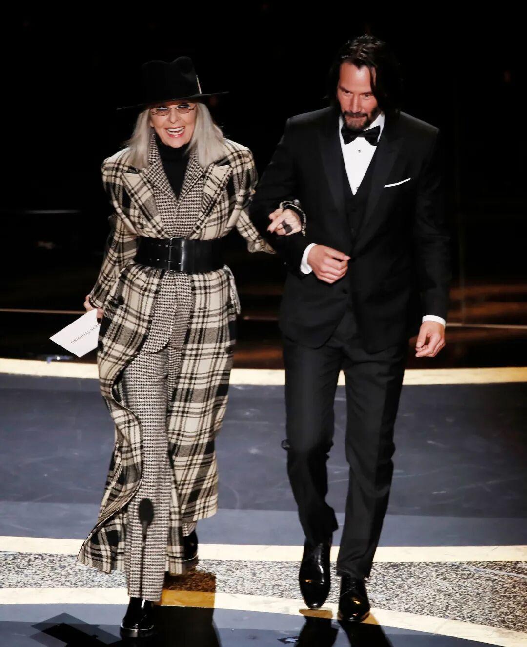 2020年 和基努·裏維斯作爲奧斯卡頒獎嘉賓,穿的這身 格紋長外套和西裝疊搭受到了一片好評。內外都是格紋,因爲顏色不花,所以也不顯雜亂。▼