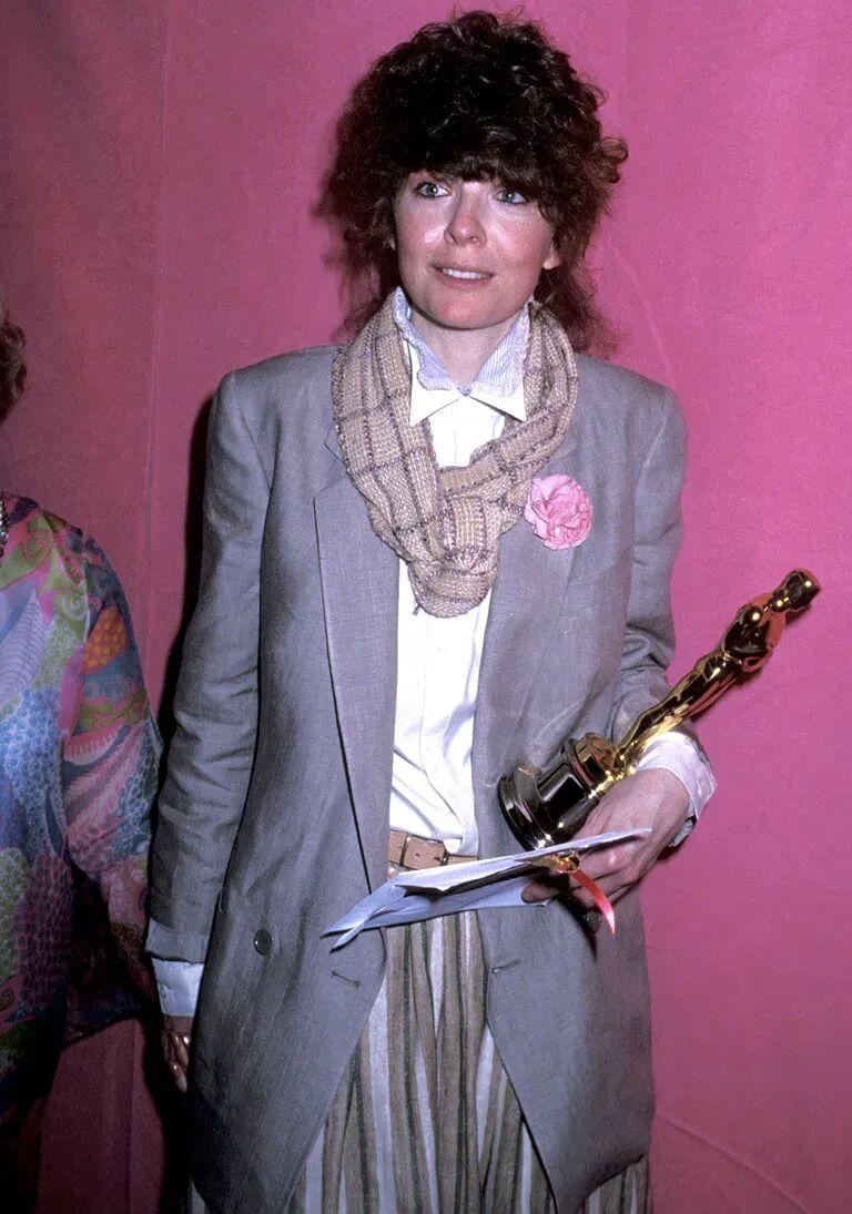 1978年奧斯卡頒獎典禮上,她憑藉在電影 《安妮·霍爾》的精彩表現,拿下奧斯卡最佳女主角獎。着裝方面,也是 巧妙地 呼應了角色。 ▼