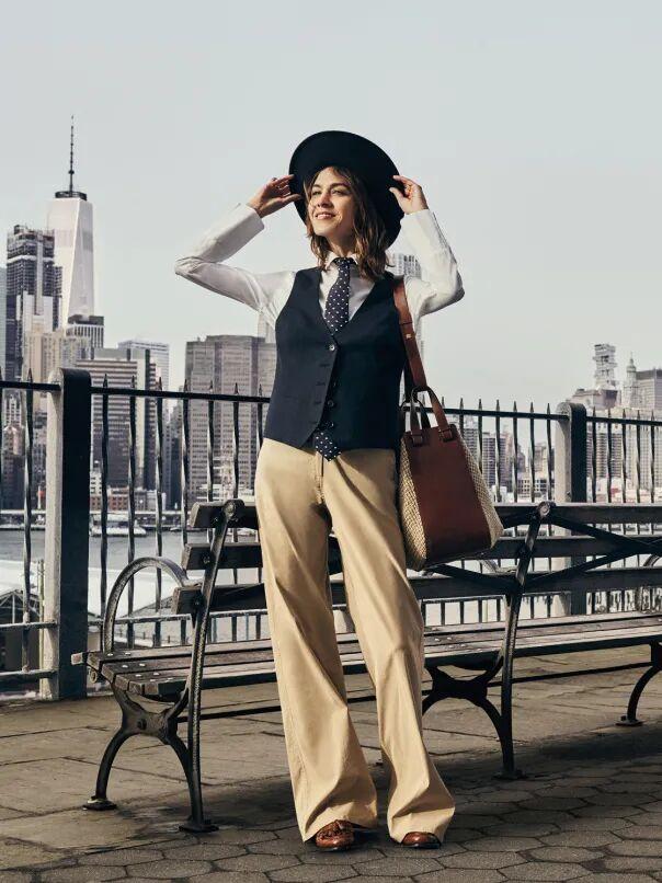 她從不把配飾當點綴,而是當作一種表達。對配飾的喜歡也源自自己鍾愛的風格:我不想太過浮誇,但我確實想穿自己喜歡的衣服。黑白兩色的套裝,你可以隨意搭配。我可以戴很多帽子,或者穿一件配寬腰帶的外套。