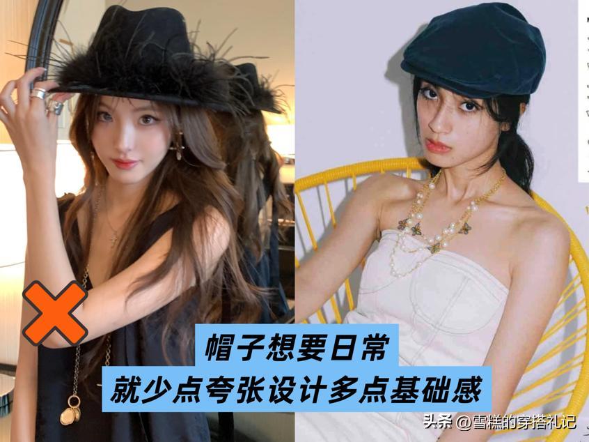 錯誤認知3. 跟風“誇張裝飾”博眼球:羽毛、水鑽堆砌的帽子,用力過猛反而顯老氣