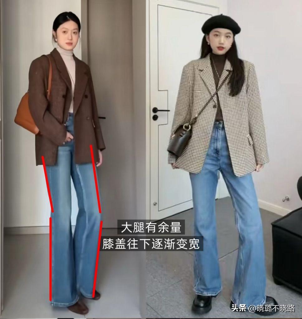 相信很多下身胖的女生,都不敢嘗試喇叭褲,總覺得這種褲型,會讓大腿粗的問題更明顯,可實際上,喇叭褲≠微喇褲,經典的喇叭褲型,大腿位置也有一定的餘量。