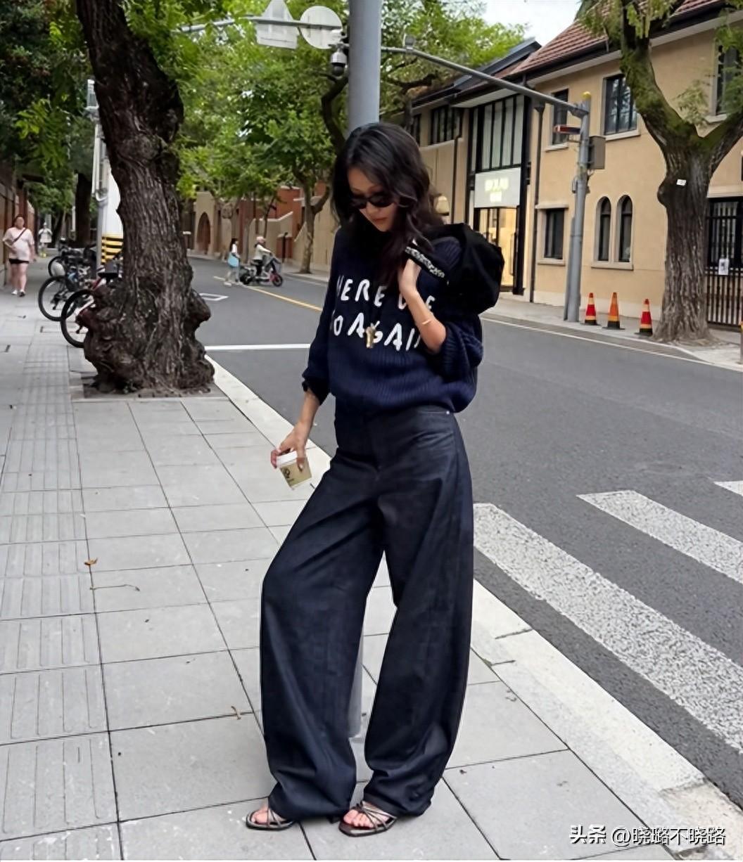看似不挑剔腿型的闊腿褲,普通人穿就像個“行走的大蘿蔔”,要麼褲腿巨肥,要麼長度拖地,真的讓人欣賞不來,甚至還會顯得又矮又邋遢,走起路來都不帶風。