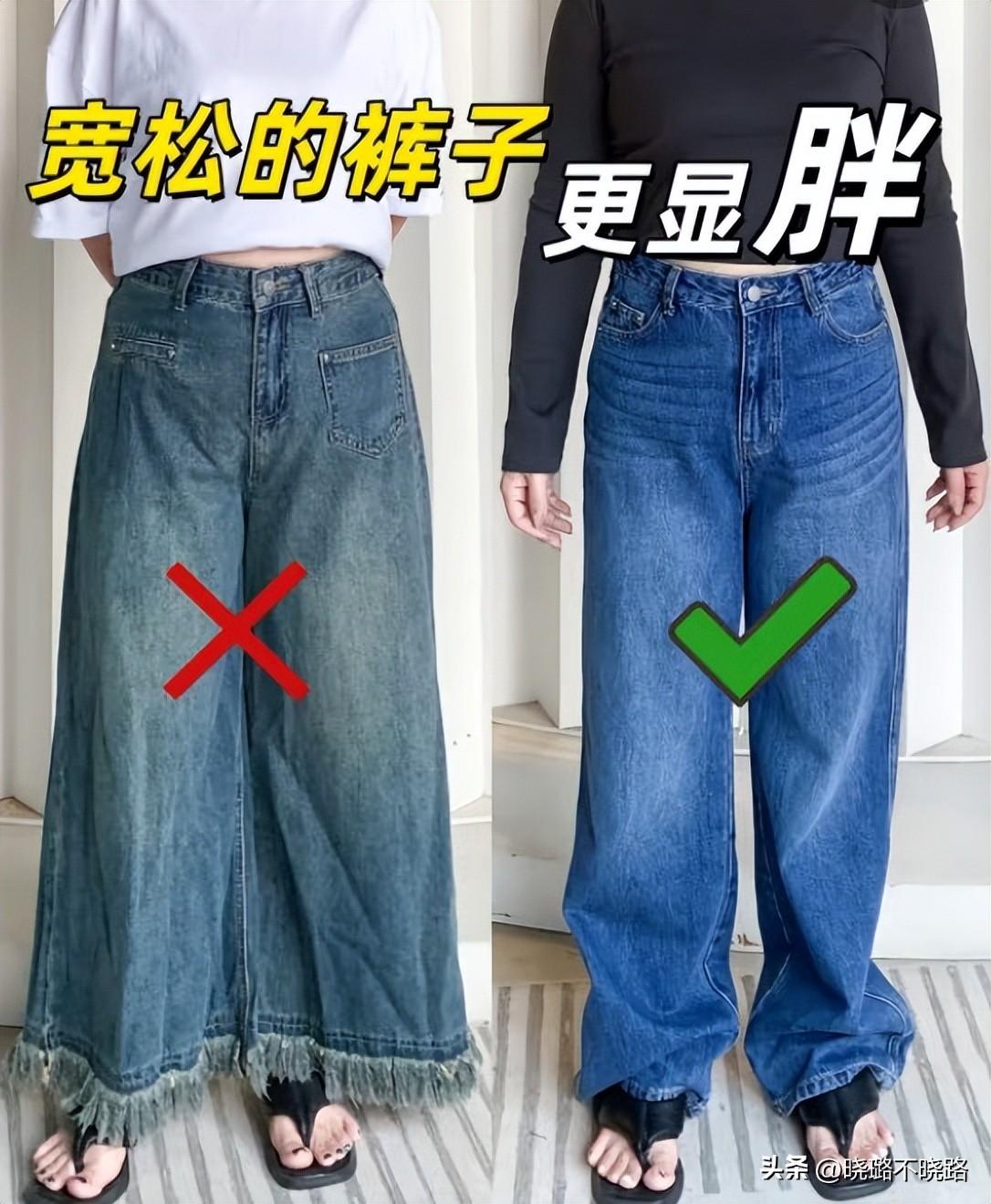 下半身偏胖的女人,穿錯褲子,在視覺上還會顯得腿短一截,尤其是特別寬鬆的闊腿褲,容易顯腿粗一圈不說,甚至還有拖沓感,上身真的毫無美感。