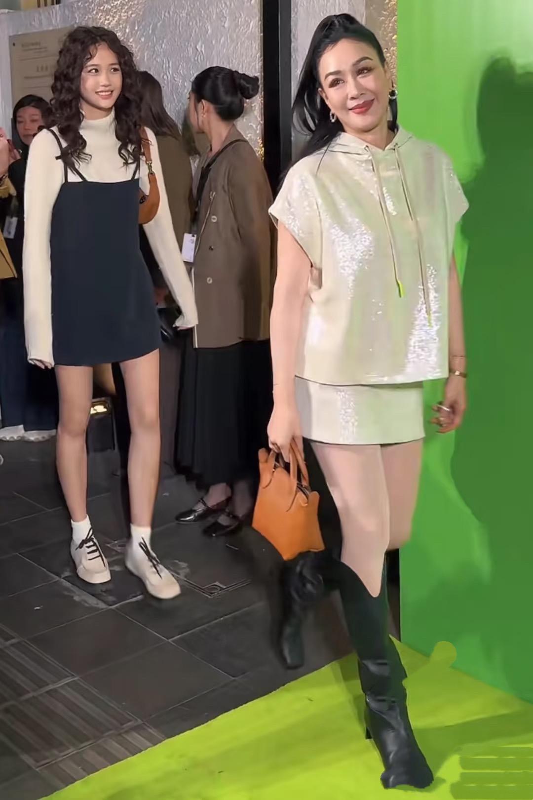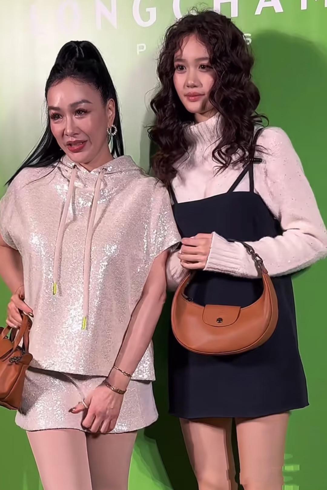 她帶着兩個女兒一起走紅毯,還和劉亦菲合影了。兩個女兒氣質不同,二女兒更加高冷、適合超模路線。考拉長相甜美,感覺戲路會更寬一些。
