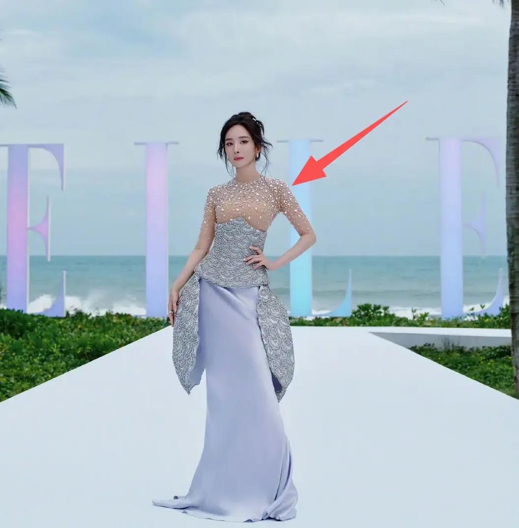 楊冪的肉色打底,性感是足夠性感,但這感覺像是沒穿一樣。雖然是高定禮服,但並沒有什麼美感,就像是爲了秀身材而秀身材。