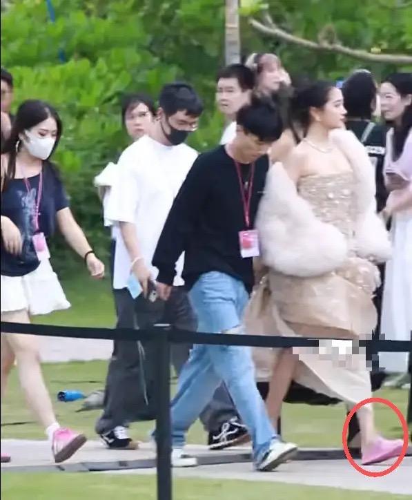 而且關曉彤的粉色拖鞋也被捕捉到了,不過這也沒啥。還沒有進場的時候,穿着拖鞋會更舒服。如果走紅毯也穿拖鞋,只能說明關曉彤個子足夠高、也夠自信。