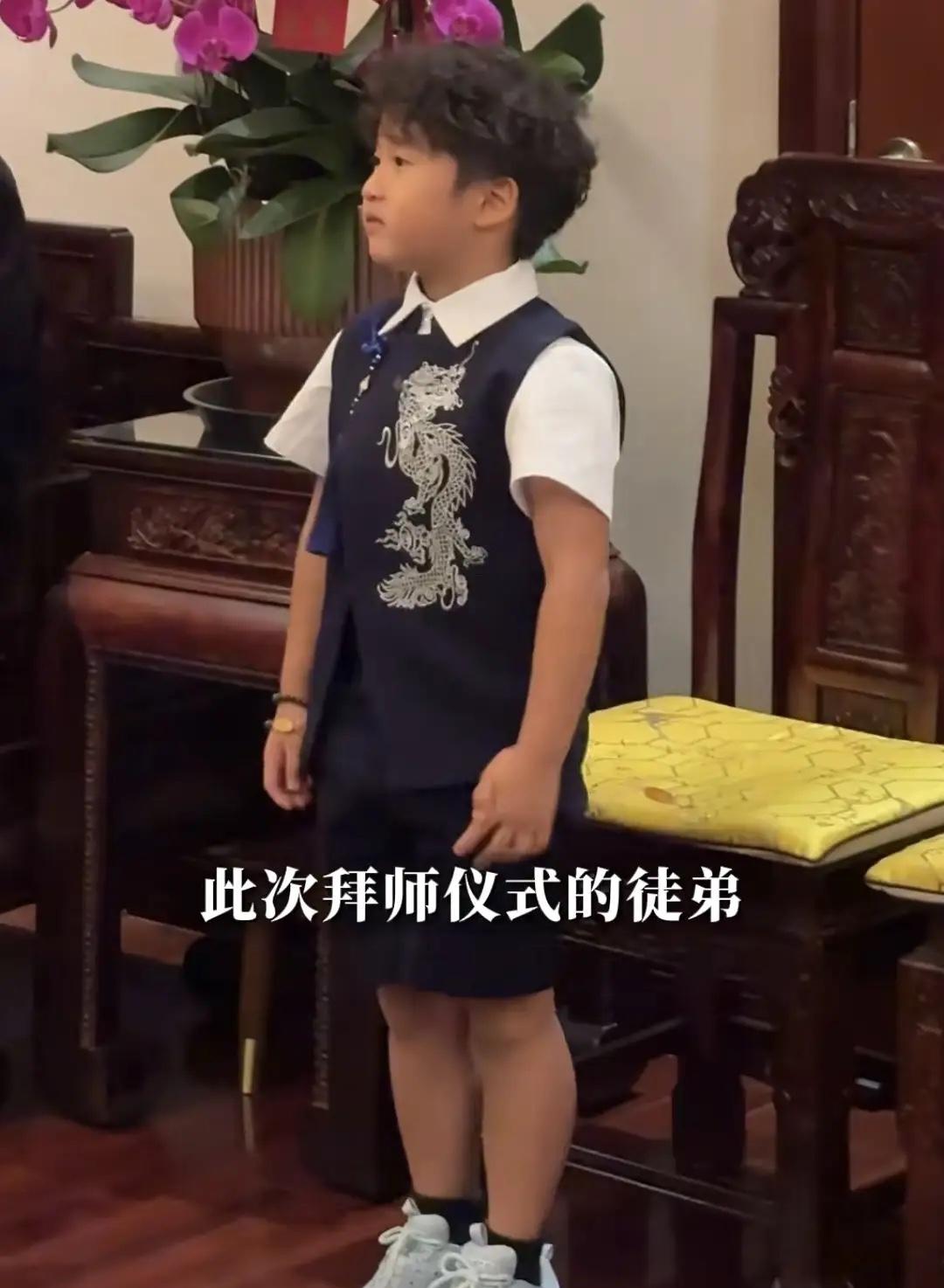 6歲的冉明曦,端莊恭敬的朝着師父行禮。想必在家的時候,冉瑩穎已經把禮儀都教給兒子了。