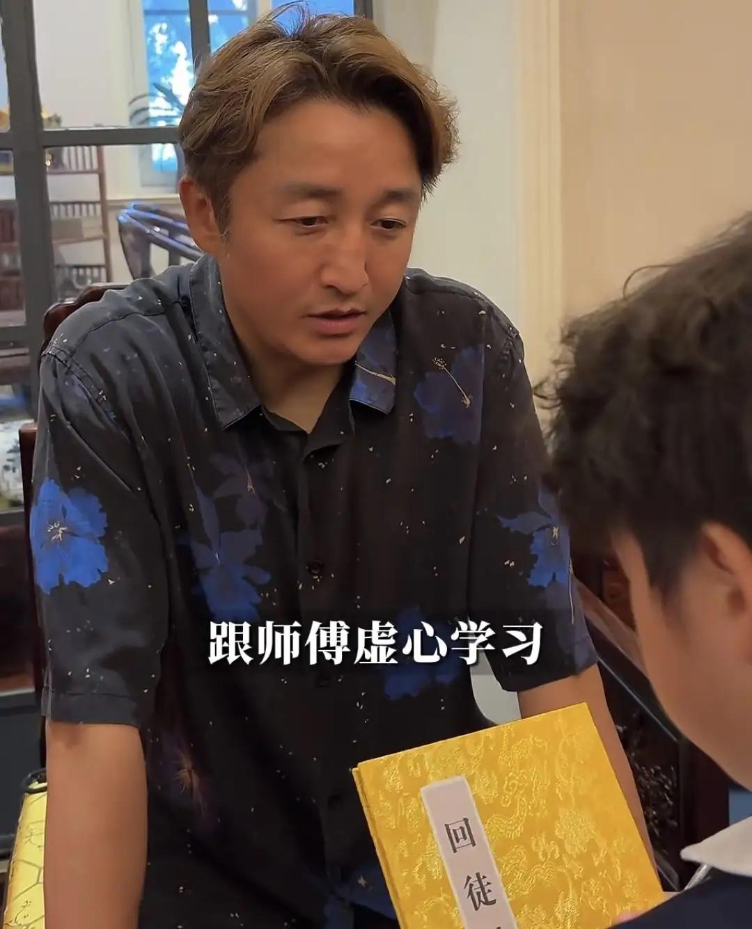 在工作人員的指引下,冉明曦跪地向師父奉茶。整個過程冉明曦都很鄭重,並沒有任何嬉笑的成分,他才6歲,就知道很嚴肅的看待自己的拜師禮。