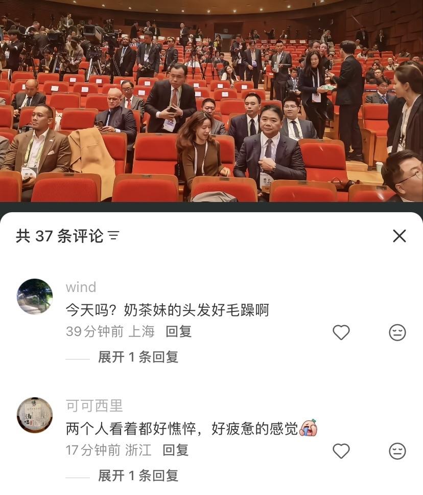 劉強東章澤天罕見同框,兩人之間隔着20公分,不像夫妻像同事!