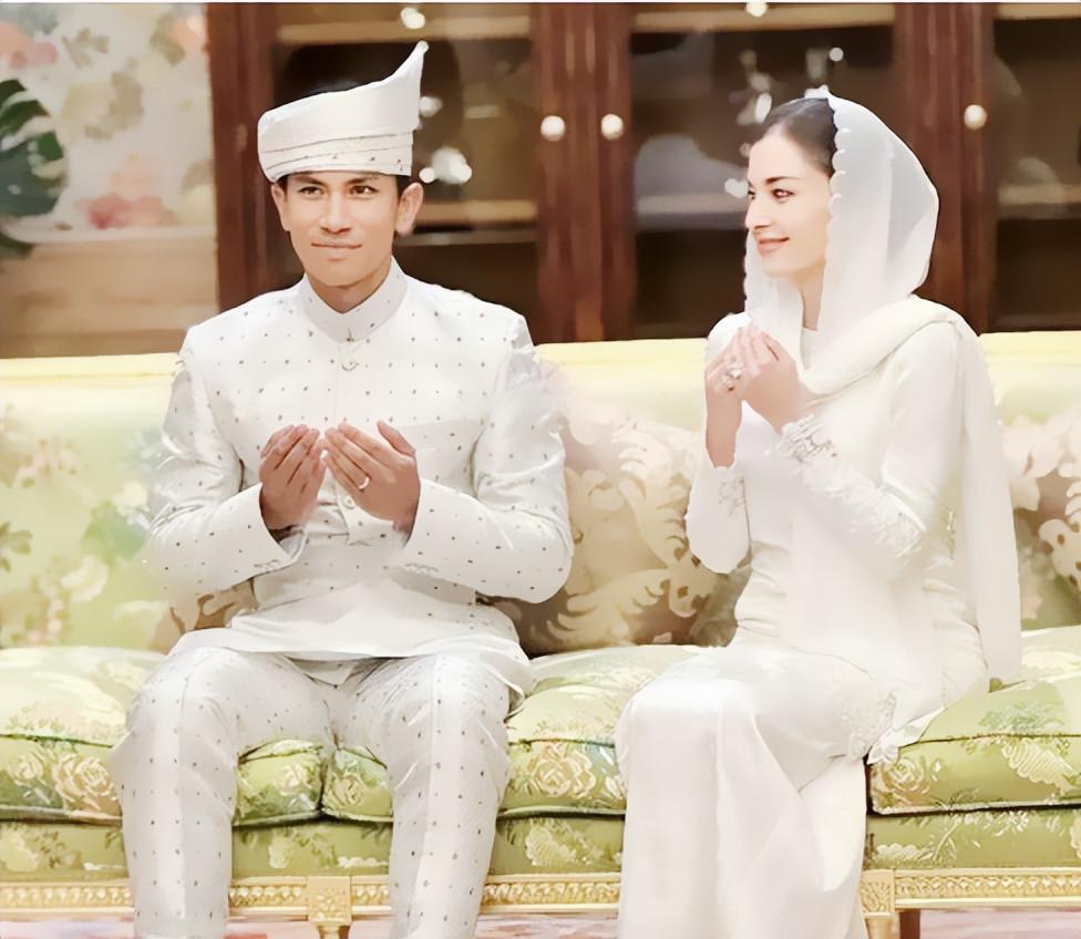 這幀畫面裏,王妃垂落的銀紗長裙與王子筆挺的白襯衣相映,既是現實版王室童話的續寫,更是文萊服飾文化中 “傳統與現代共生” 的生動註腳。