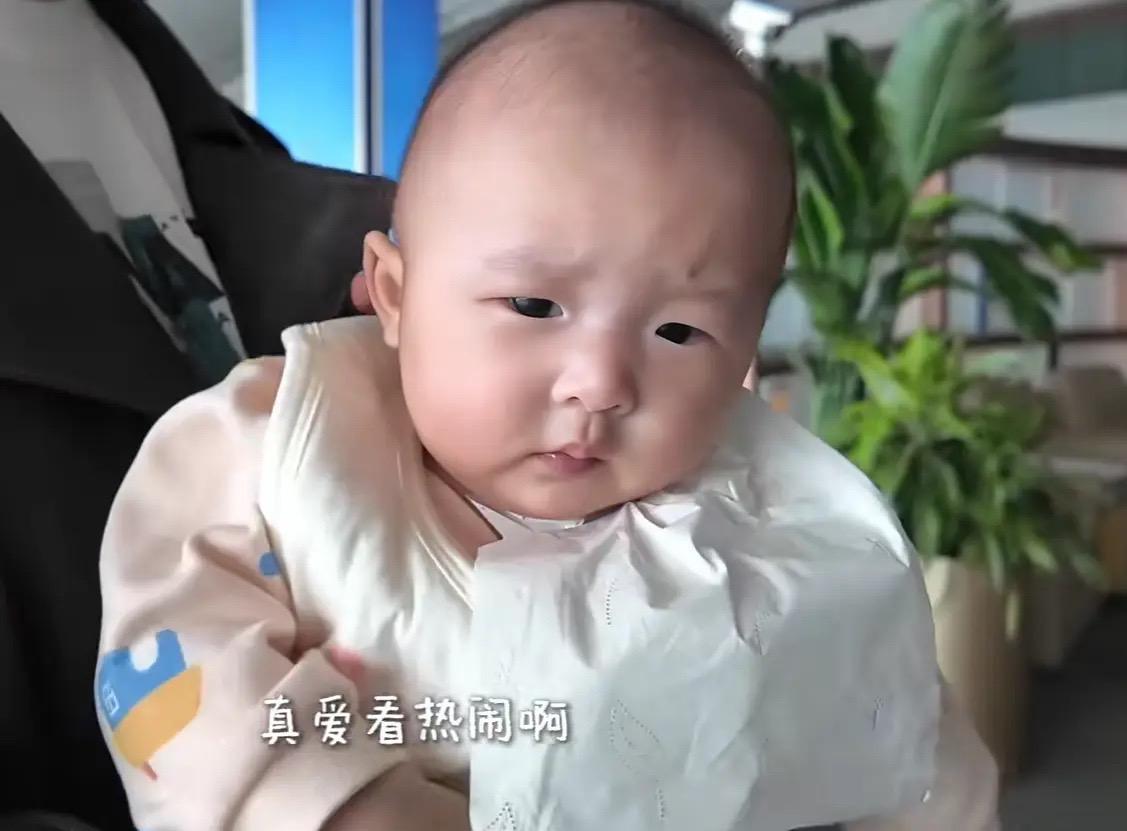 愛看熱鬧的小娃娃,也是被一家人寵在手心的小寶貝。她頭髮比較稀疏,看起來發量不是很多,小姑娘長大後應該會更好看。