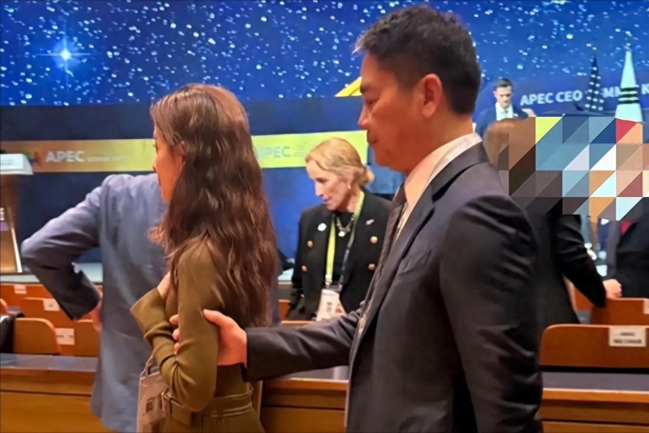 會議中間的時候,章澤天還低下頭、輕輕地幫劉強東整理衣服。老夫老妻、每一個動作都那麼自然。