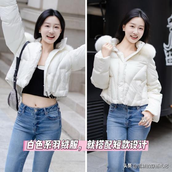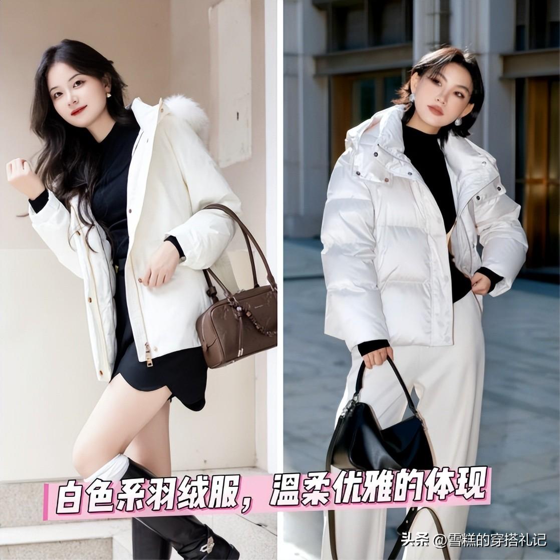 如果想要趨向於更加穩定的搭配,那麼推薦大家可以首選白色系的羽絨服,真的是屬於非常清新又溫柔的呈現效果相比較於黑色系而言,對於我們肌膚狀態的優化力以及整體氣色的襯托力度也是比較好的。雖然淺色系列的羽絨服會有一些膨脹感,但是我們在選擇單品的時候可以針對於某一種款式來進行入手,削弱它的膨脹感。