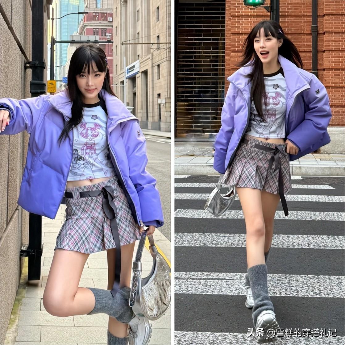 紫色系的羽絨服當然也可以結合像短裙以及短褲這樣的下半身搭配,運用起來的時候真的可以說是時髦感和減齡感滿滿的存在。如果你的腿型非常好看,想要將這樣的優勢給體現出來的話,那麼推薦屏幕前的各位女性一定要選擇這樣的搭配,在秋冬季節的時候也可以很明顯的減少沉悶感。