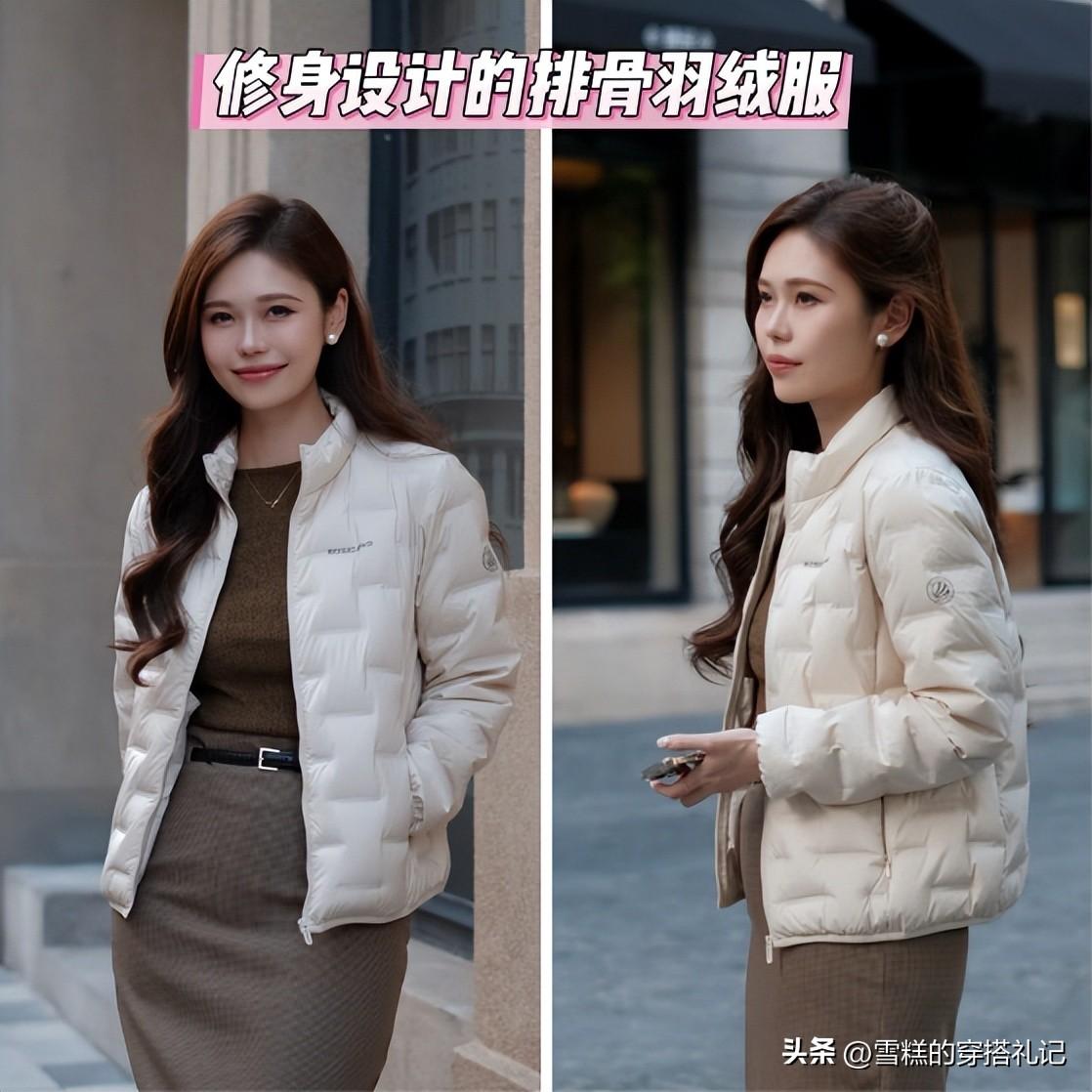第2種則是可以考慮比較修身系列的羽絨服,也就是當下非常流行非常時髦的排骨羽絨服,相信對於屏幕前的各位女性來說一定不陌生吧,因爲它本身是屬於比較修身的設計走向,而且輪廓也比較明朗,所以在搭配起來的時候可以說是自帶顯瘦感的優勢所在的。