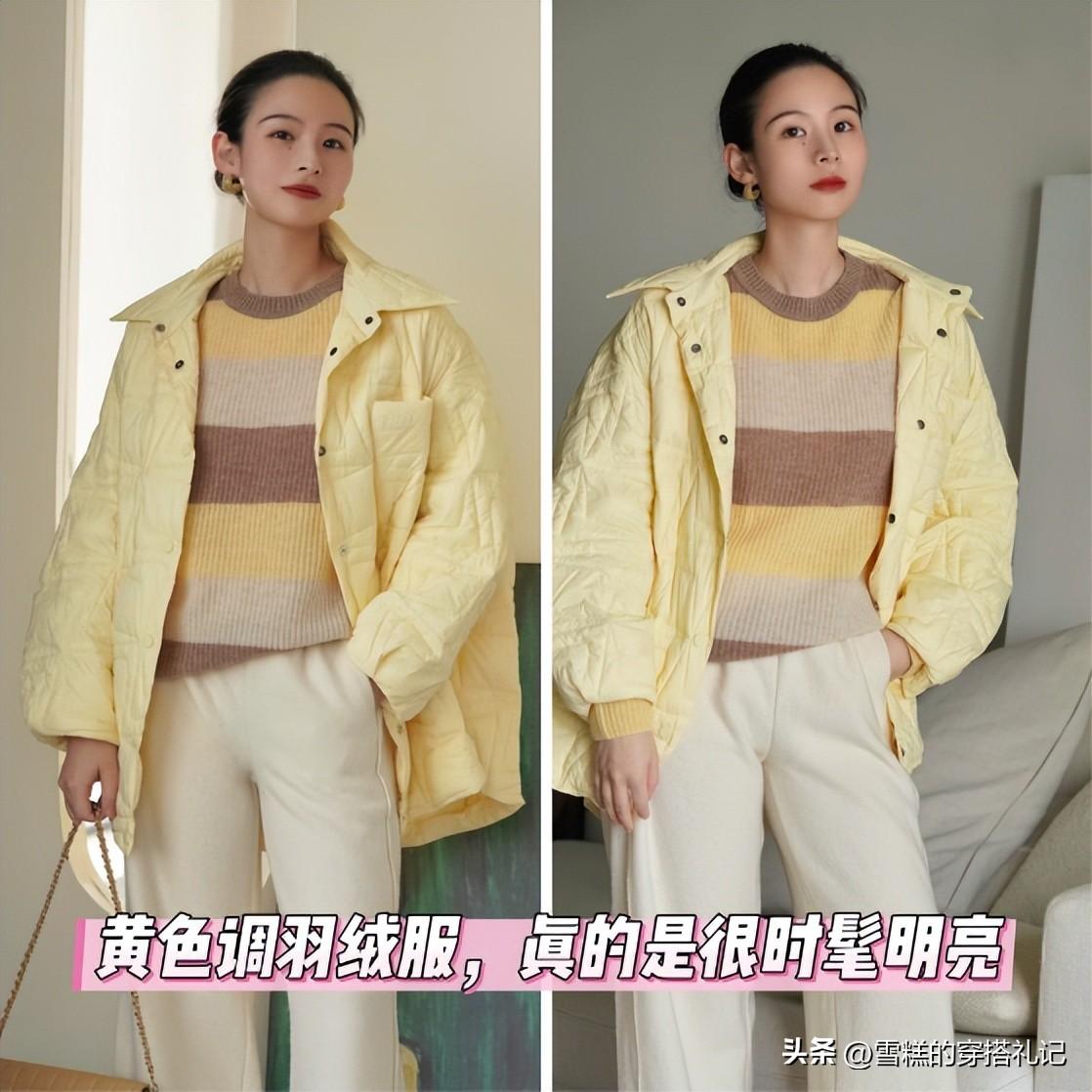 TIPS三 在冬季,要避免沉悶,明朗的黃色羽絨服