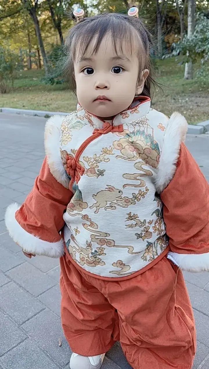 他們的女兒一歲2個月了,胖嘟嘟的非常可愛。北京的初冬、已經非常冷了。外出逛公園的時候,給女兒穿了紅色國風棉衣,看着非常喜慶、就像是年畫娃娃。