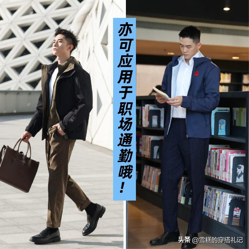當然了,如果在職場當中不想搭配非常正式的西裝外套的話,這個時候你的外套單品就可以換成衝鋒衣來進行替換了,尤其是像始祖鳥這一款品牌,它本身所展現出來的高級和沉穩的感覺就會比別的品牌更爲明顯,衝鋒衣結合利落型的長褲亦可運用於職場通勤的時候來進行搭配。