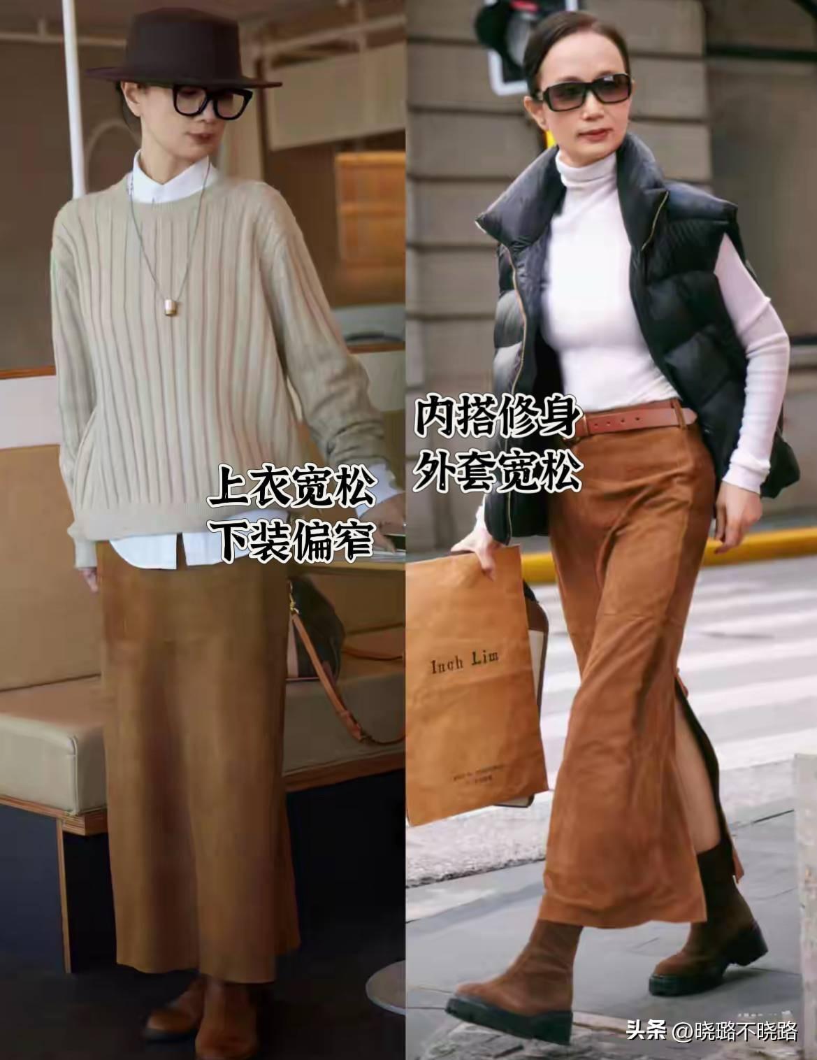 穿衣打扮的核心就是“揚長避短”,相比起一味的胡亂堆砌,懂得取長補短,採用“鬆緊結合”的搭配模式,巧妙的優化身形線條,例如修身打底衫+羽絨馬甲,配條直筒裙就很顯瘦。