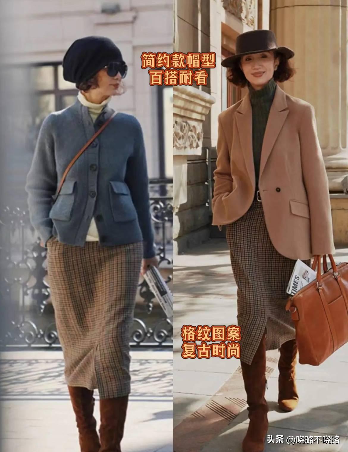 三木媽媽就很喜歡穿羊絨衫,做秋冬季節的剛需,疊搭在西裝、毛衣、大衣裏面,保暖係數up up,再搭配一條包臀格紋裙,秒變“摩登女郎”,戴頂復古感的冷帽、平檐帽或者軍帽,回頭率100%。