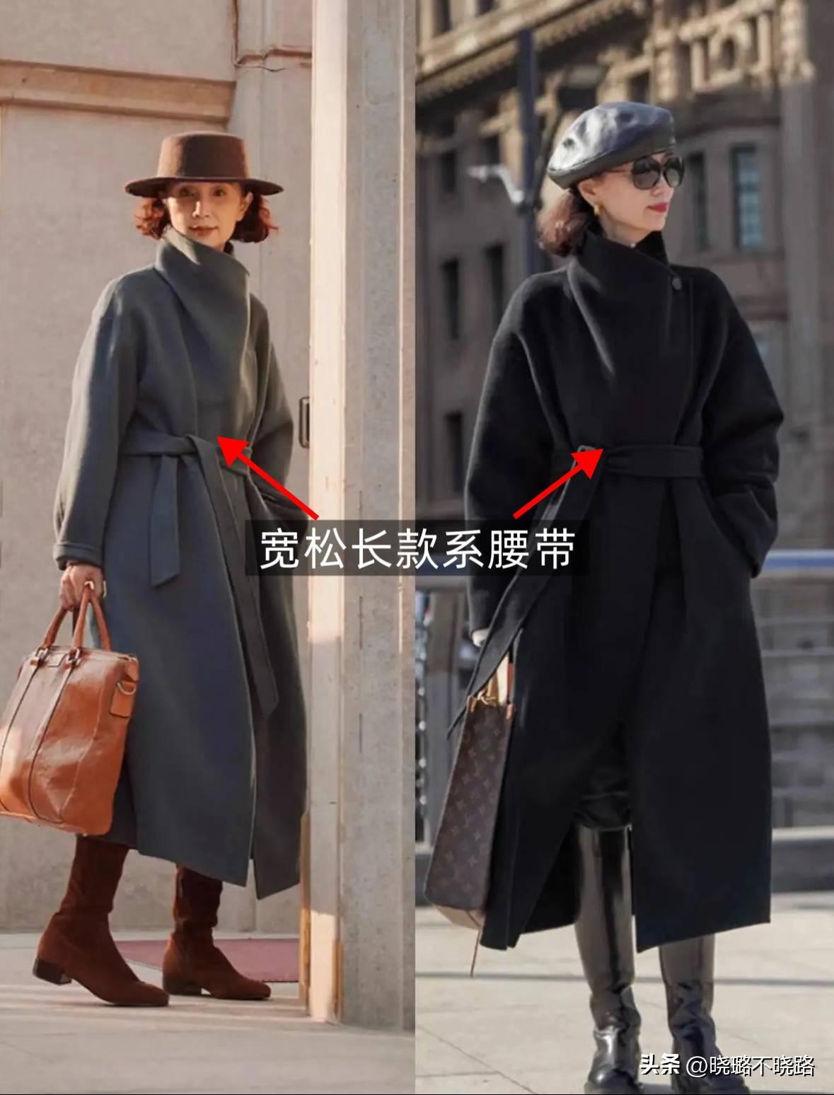 三木媽媽的穿搭祕訣,就是“穿松不穿緊”,她挑選的衣服從不緊身,像這種長款大衣,只需要利用腰帶加持,就能掐出腰線,完美分割身材比例。