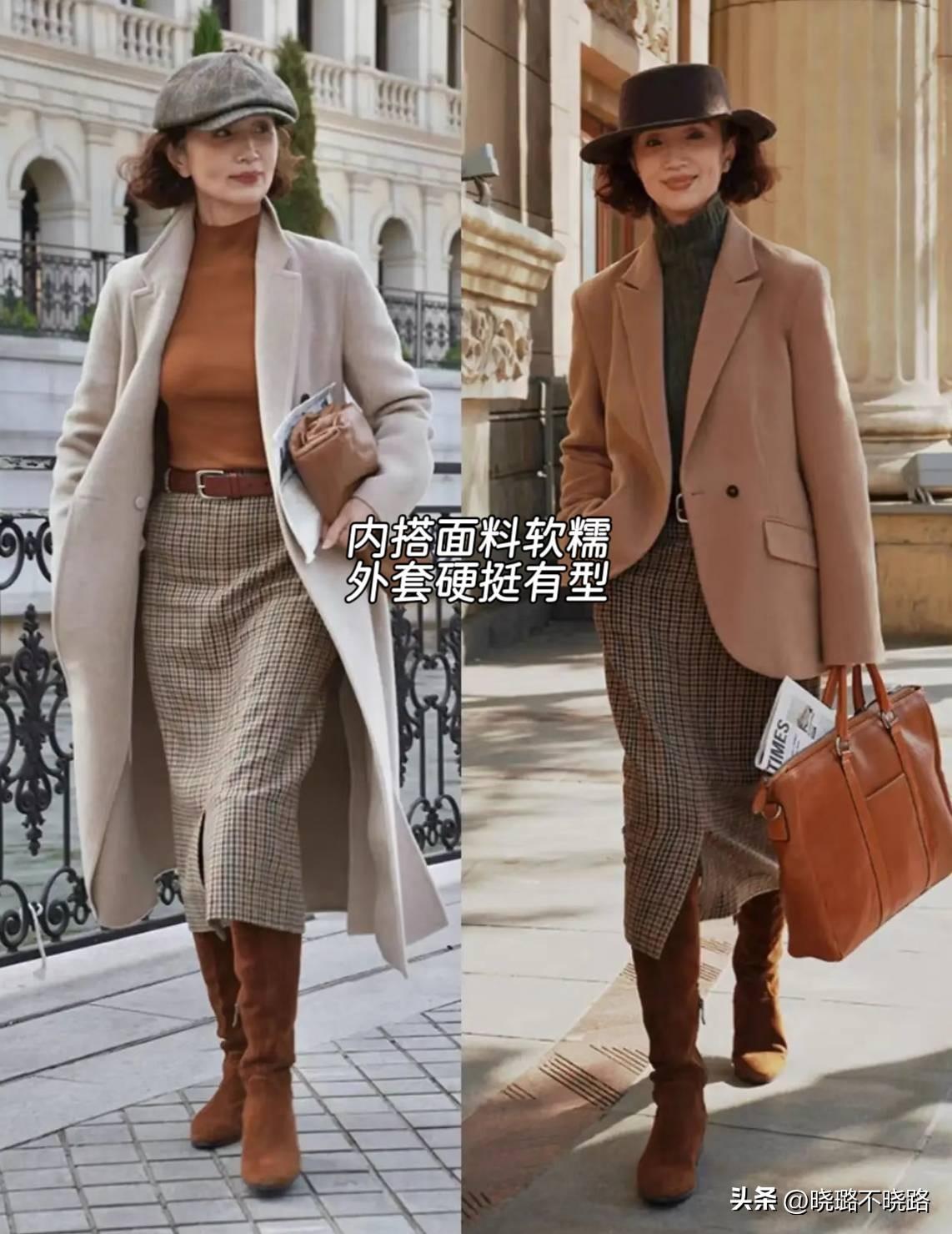 中老年女人的穿搭,還要懂得“曲直結合”,尤其是冬季搭配,內搭可以選擇修身款式,勾勒出身材曲線,再裹上一件直筒大衣或者西裝,輕鬆秀出好身材。