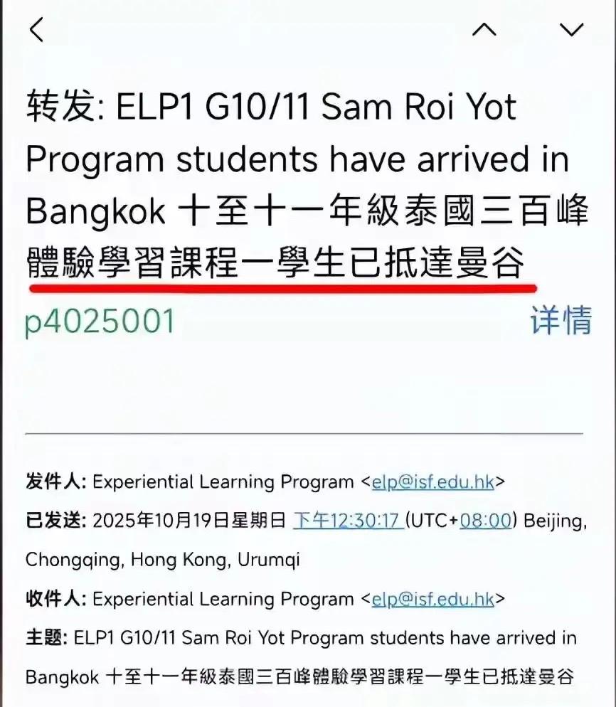 楊陽洋跟着學校去泰國,作爲家長的楊威只收到了一封電子郵件。看看日期,還是10月19日的。