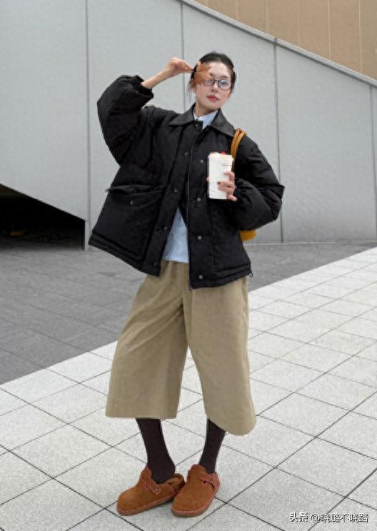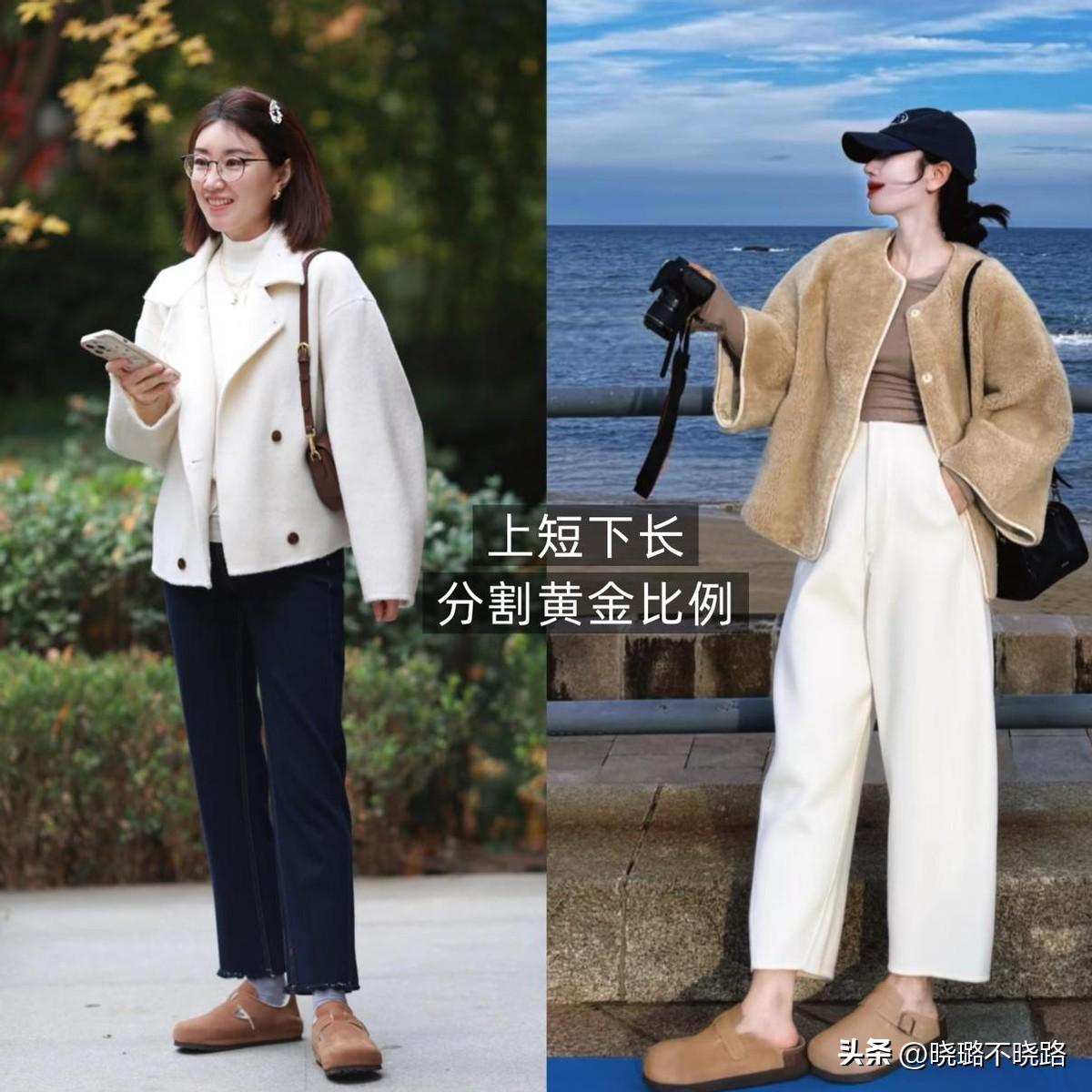 短外套和高腰直筒褲堪稱絕,小個子也能穿出黃金比例,即便是配雙平底圓頭勃肯鞋,也完全不用擔心會壓個子。
