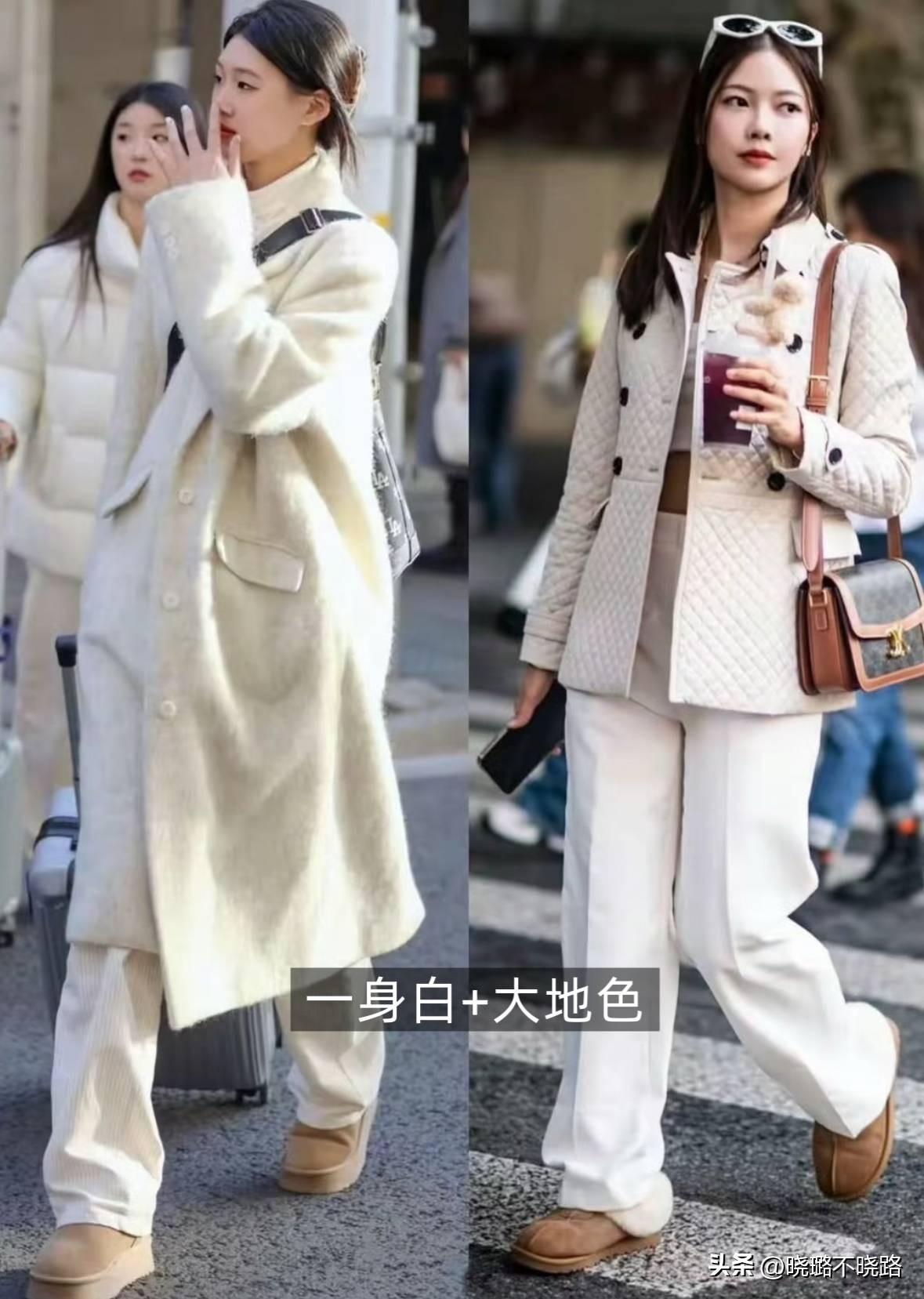 秋冬季節穿一身白,非常有氛圍感,而且清新幹淨又養眼,能夠在一片深色系當中,瞬間成爲“焦點”,白色系的主導單品,需要通過大地色進行平衡。