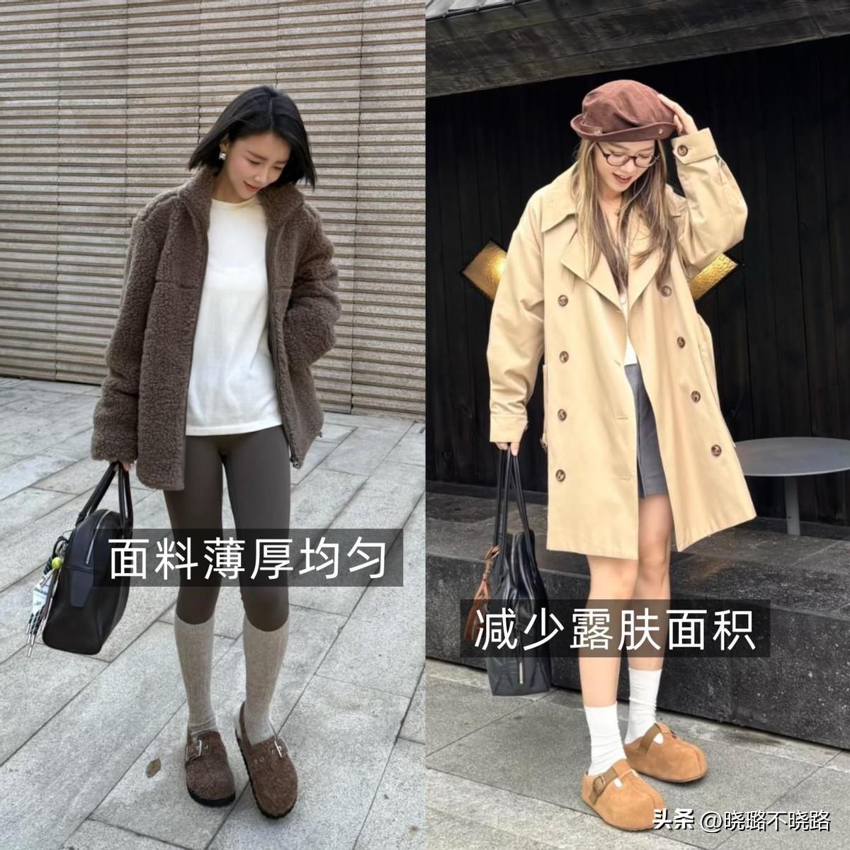 服裝單品的面料要薄厚適中,避開大面積露膚的款式,即便是配短裙,只要套上一件長款外套,就能很好的平衡穿搭,而且保暖係數也會更高。