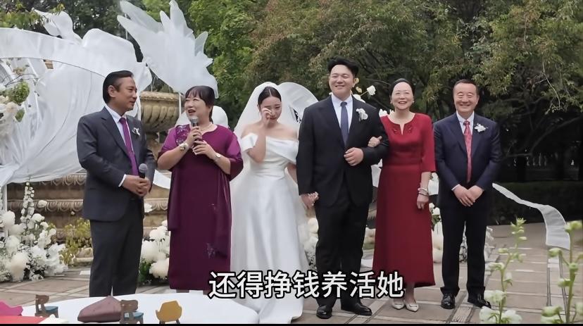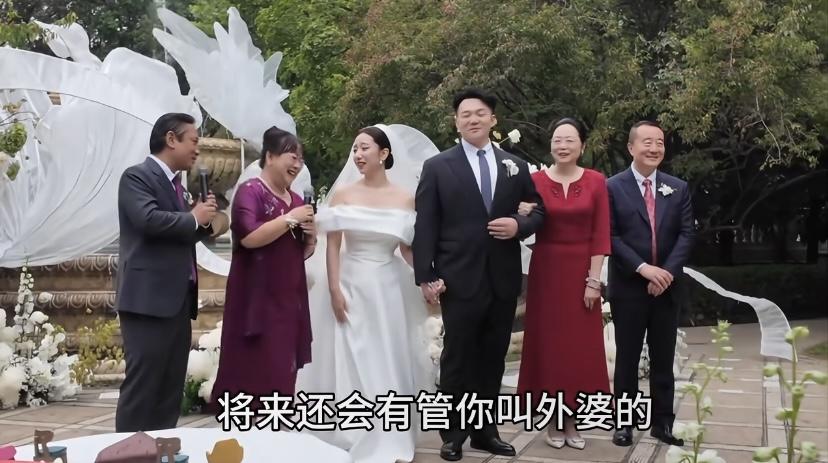 話已至此,新郎媽媽還是沒有意識到,親家就是在點自己。她還是把手挽在兒子的胳膊上,一旁的新郎爸爸略顯尷尬。