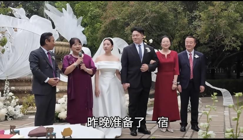 因爲新郎媽媽的手一直挽着新郎,史太太在講話的時候還特意提到了,孩子們長大了,做父母的也要學會放手,愛不是佔有,愛是放手。