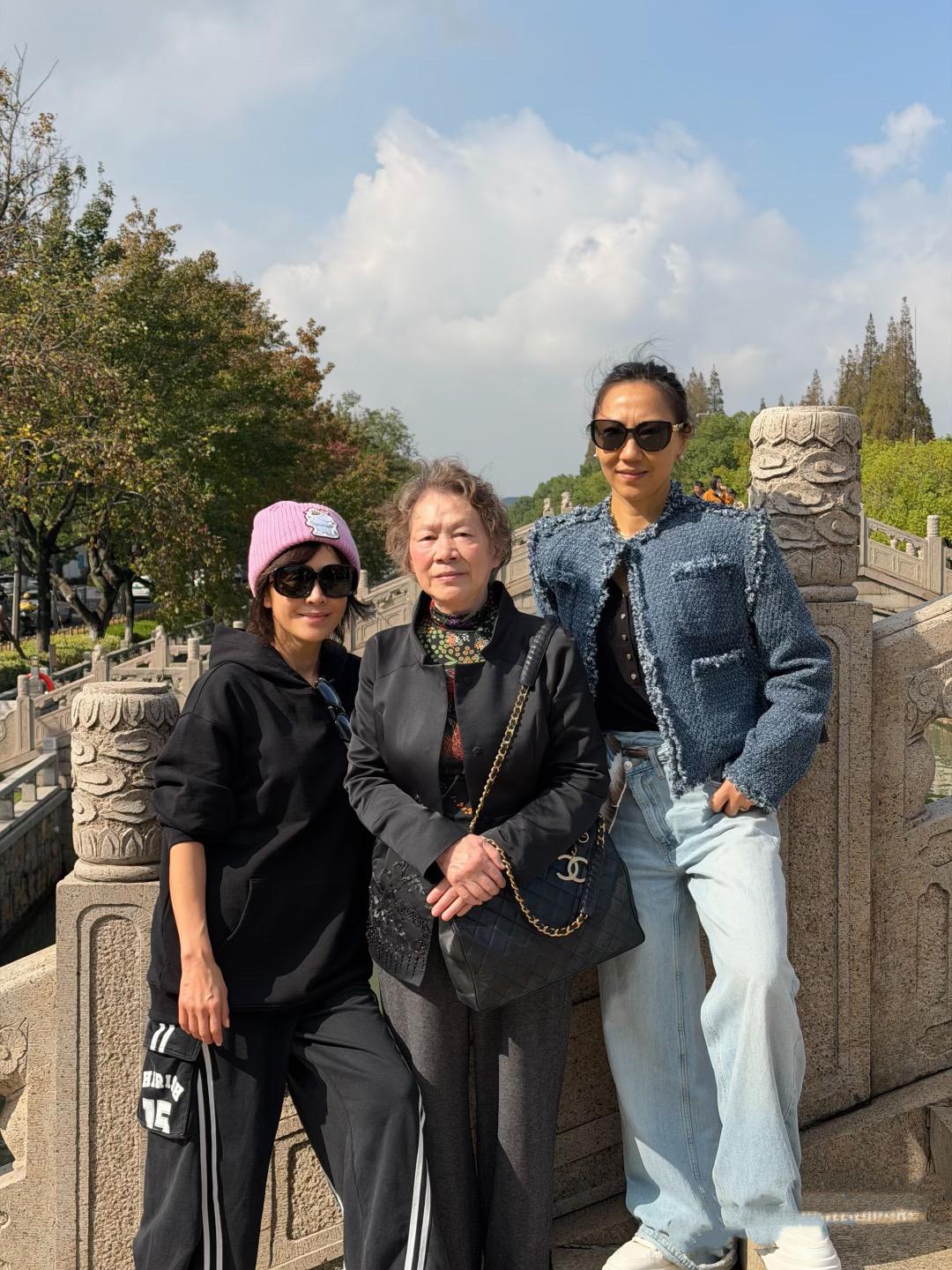 劉嘉玲的媽媽都79歲了,但是老太太依然很精神。她的頭髮燙着精緻的小卷,顯得不那麼稀疏。穿着豎領的毛呢外套,高領打底衫,利落又保暖。