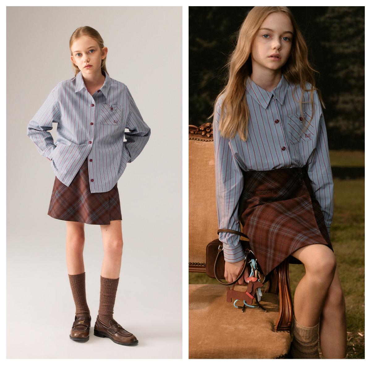 Ellekids是ELLE女裝旗下的童裝副線,品牌風格主打法式優雅風,整體風格偏法式英倫,兼具休閒感和學院感。所以喜歡這種JK外套、百褶裙或者學院風襯衫的小個子可以嘗試,比較低調優雅,冬款客單在200-500,夏季在100-200左右。