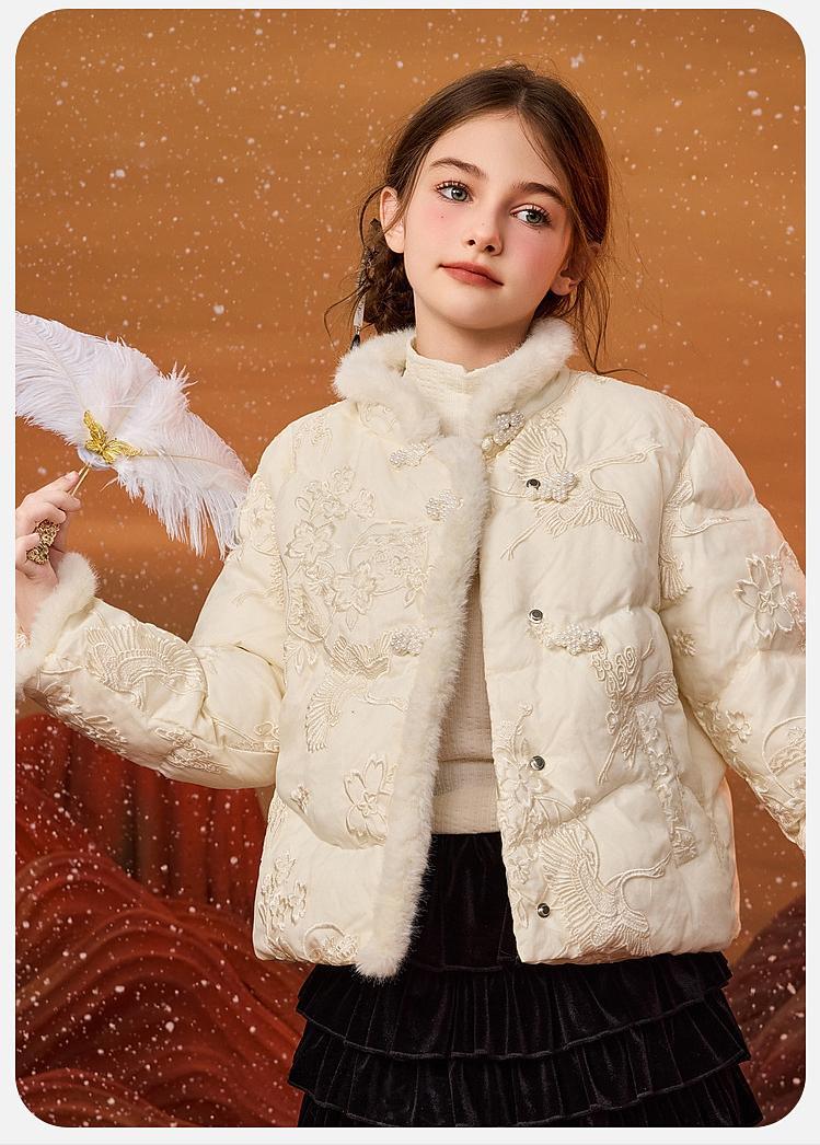 這個品牌是偶然間找到的,算是一個純線上品牌,男女童都有,各大電商都有旗艦店,它的衣服風格比較偏甜美可愛一些,冬款羽絨服新中式風格比較好看,和成人款式一樣,我也買過一件。價位在300+,尺碼也可以做到160-170的。
