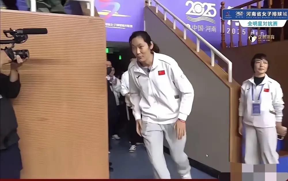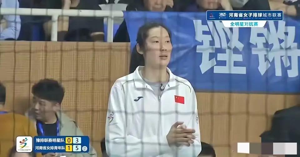她擔任女排青年隊特邀教練,穿一身白衣、幹練颯爽。賽場中她負手而立、根據現場賽況不時知道比賽戰術。