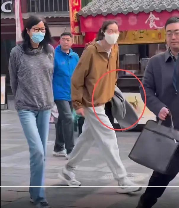 郎平身高184、朱婷身高198,這兩個人走在人羣裏太醒目了。當天朱婷穿了一件卡其色外套、拜師褲子,走起路來有點彎着身子。