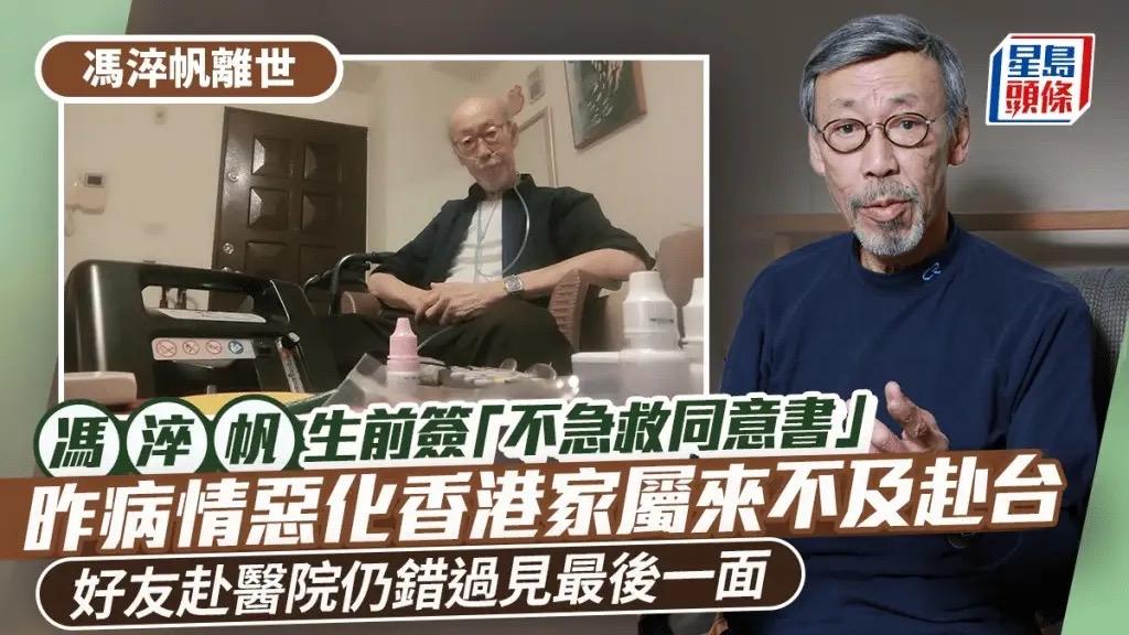 在生前,馮淬帆簽署了“不急救同意書”,當生命進入倒計時的時候,好友聽到消息也到醫院前來探望。