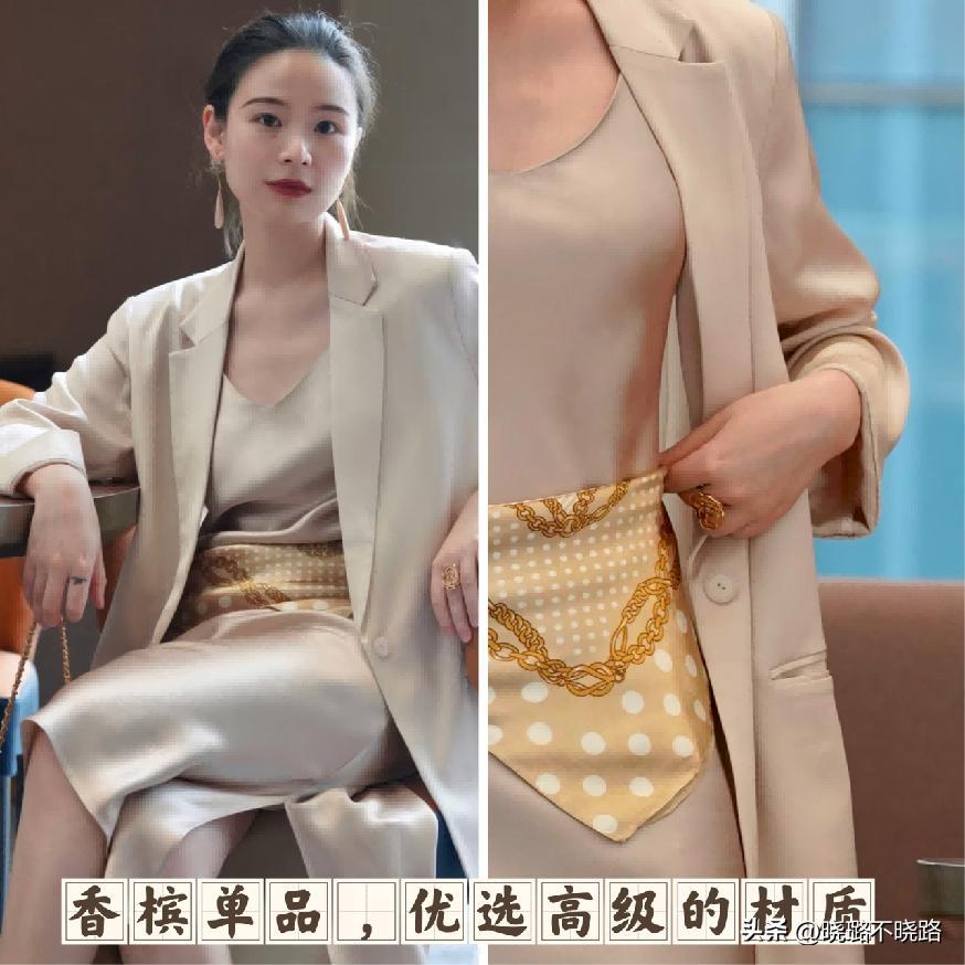 而且香檳色系的單品我們在上面已經說過了,其款式還是一定要經典簡約好搭配一些,所以要麼直接運用套裝,要麼直接可以將連體型的長款設計來進行運用,對於我們身形狀態的修飾效果也是最佳的。主要這樣極具簡練感的單品在搭配起來的時候更能夠體現高級和卓越的貴氣感。