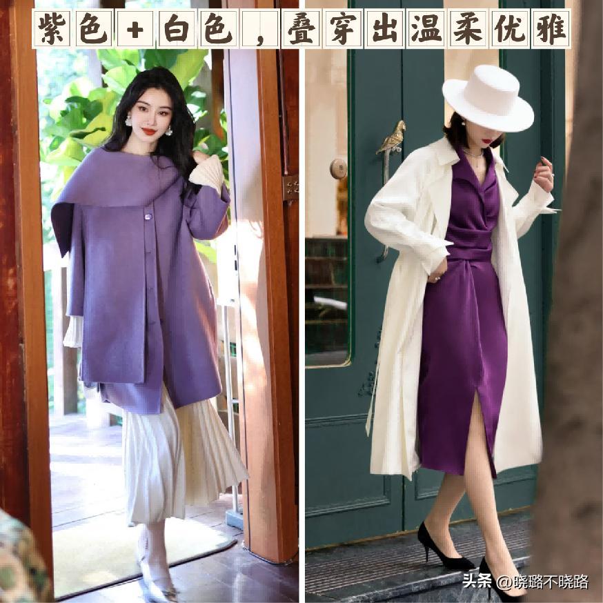 紫色調的單品搭配其實最適合的搭配搭檔就是基礎的白色系,所襯托出來的氣質狀態會更加的偏向於高級和優雅感明顯,尤其是上了年紀之後,紫色系它是屬於彩色調,所以搭配結合一款基礎的色調,可以提升整體的穩定度。而且這樣的搭配色系可以應用於一些比較正式或者是約會的場合當中,襯托出來的高級和優雅感真的非常的極具明顯。