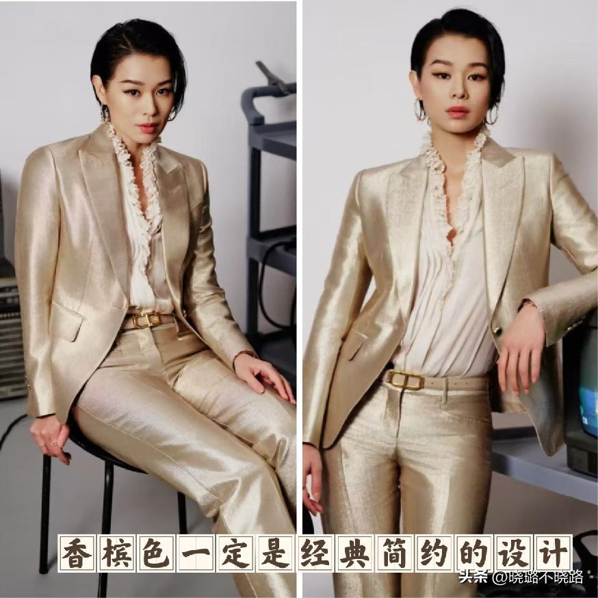 最經典的香檳色其實不管搭配什麼樣的設計款式,只要是比較簡約經典的類型,那麼所襯托出來的富貴感真的是非常明顯的,所以在今天的分享當中還是要提醒屏幕前的各位女性上了年紀之後,搭配香檳色還是要以高級經典的設計款式爲主,例如像大衣、西裝或者醋酸面料的一些長裙以及大衣這一類。