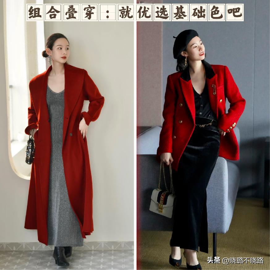 如果深紅的色系進行搭配的時候要考慮疊穿的話,也一定要優先於選擇一些基礎的色調,才能夠將非常高級非常有層次的感覺給襯托,在這裏就推薦大家可以在秋冬季節的時候,運用白色系體現出來一定的溫柔質感,又或者是結合黑色系又利落又高級,真的很適合應用於一些比較正式的場合當中。