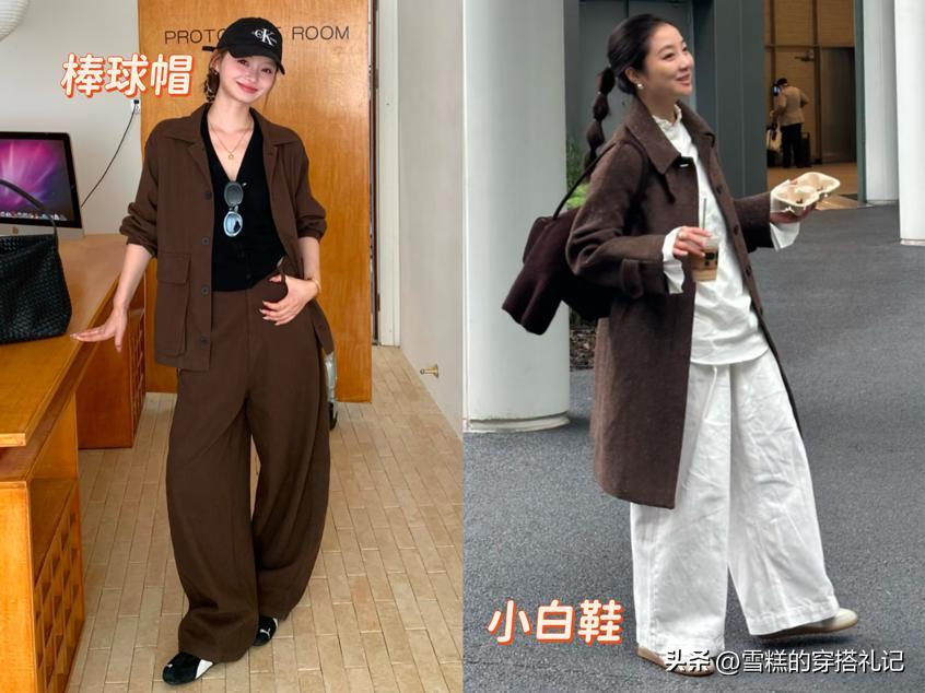 小白鞋的加入則能讓大地色穿搭瞬間輕盈。原本沉穩的造型因爲小白鞋的加入多了幾分青春活力,即使是成熟的焦糖色套裝,搭配小白鞋也能弱化老氣感,變得日常百搭。此外,棒球帽、帆布包等配飾也能起到年輕化作用。