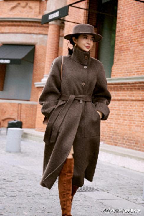她的單品大多以基礎款爲主,沒有複雜的印花和誇張的剪裁。比如淺棕色西裝外套、卡其色直筒褲、駝色針織衫等,這些單品線條簡潔,容易搭配,且能長時間不過時。在組合時,她會盡量減少裝飾,比如一件基礎款駝色大衣,只搭配簡單的內搭和褲子,通過版型和色彩的平衡展現高級感,避免過多配飾或複雜設計造成視覺負擔。