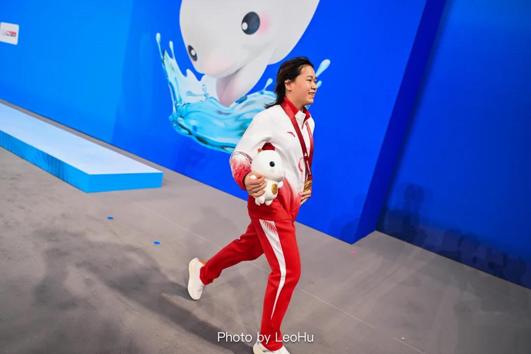 這是全紅嬋復出首秀,在觀衆和粉絲的期待下、在全場雀躍的歡呼聲中,她又一次走向了冠軍領獎臺。