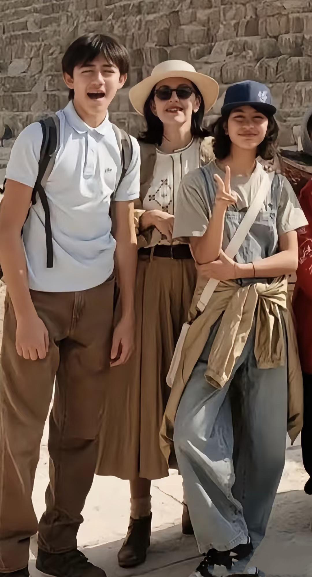 安娜帶着倆孩子旅行,諾一和霓娜的氣質完全不同。霓娜就是那種很大氣的長相,諾一顯得有點太糙了。
